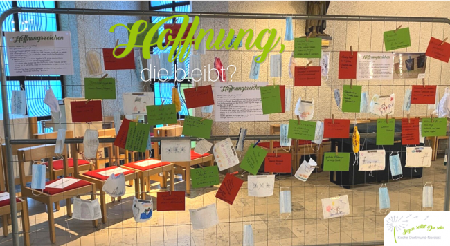 So sah er letztendlich aus: der „Hoffnungszaun“ in der St. Johannes Baptista Kirche. Hier waren nicht nur Wünsche für die „Nach-Corona-Zeit“ notiert, wie beispielsweise Treffen mit Familie und Freunden, Gesang…