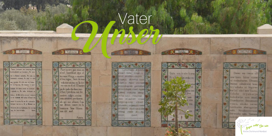 Es ist ein sehr zentrales Gebet der Christen, das „Vater unser“. In zig Sprachen übersetzt, gut zu bewundern in der „Paternoster“-Kirche in Jerusalem, von der das Bild stammt.