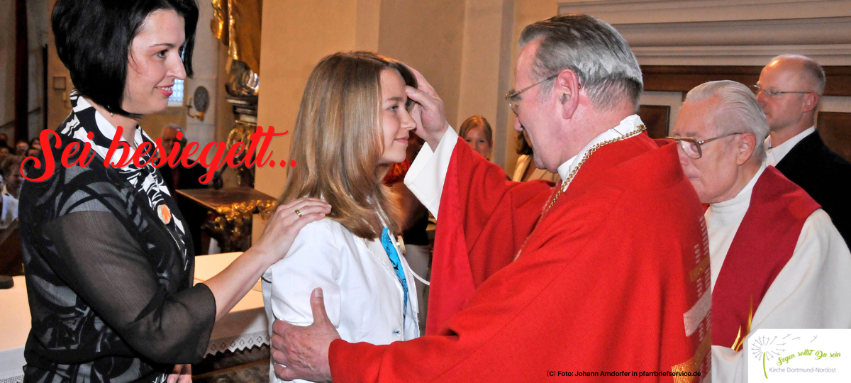 Das gilt auch für die Firmung. Das Bekenntnis junger Menschen an der Schwelle zum Erwachsensein zu unserem christlichen Glauben wird bei der Spendung des Sakramentes durch den Bischof und im Beisein der Gemeinde besiegelt: „Sei besiegelt durch die Gabe Gottes, den Heiligen Geist!“ Diese Besiegelung ist zugleich der letzte Schritt in die Gemeinde Jesu hinein und eine Bestätigung dessen, was die Eltern bei der Taufe auf den Weg gebracht haben: Das Leben aus dem Glauben heraus zu gestalten.